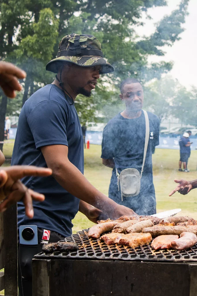 What: Enjoying the post-relay festivities, taking in the lively atmosphere as participants unwind, celebrate their efforts, and share moments of connection after the morning’s event.